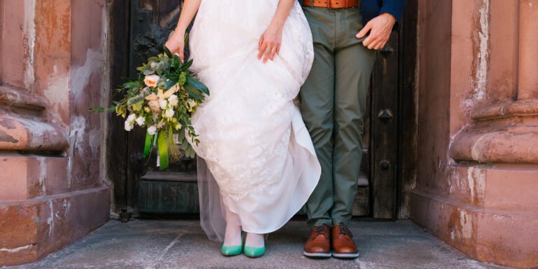 A bride and groom at the entrance to the church | Source:…